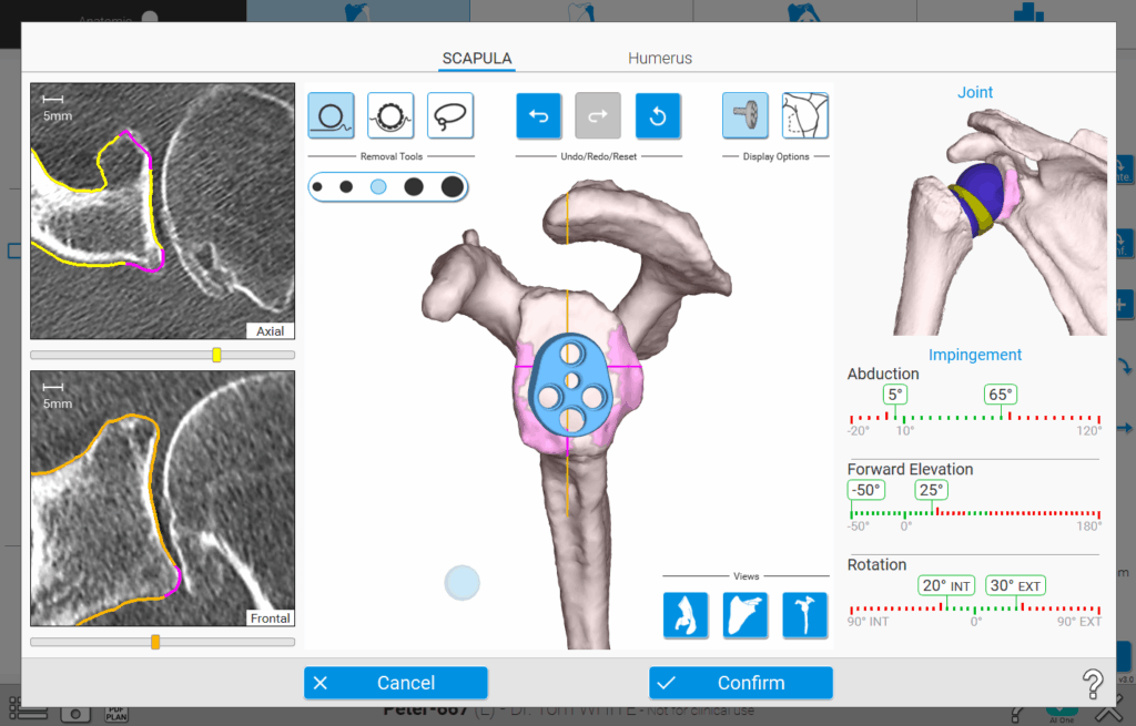Elevando las opciones de planificación para los cirujanos, la Aplicación de Planificación de Hombro ofrece una planificación específica para cada paciente y precisión asistida por GPS.