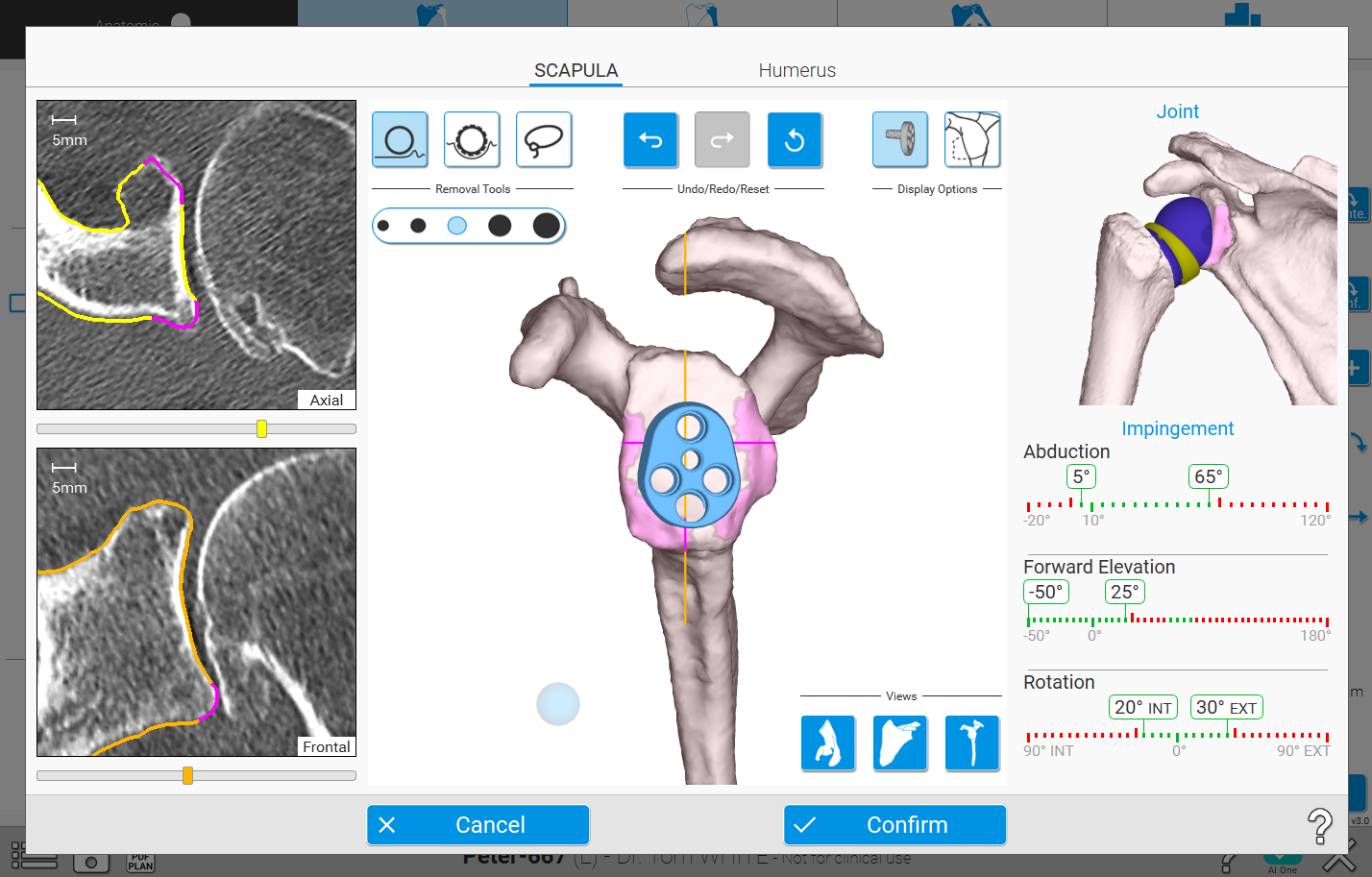 Elevando las opciones de planificación para los cirujanos, la Aplicación de Planificación de Hombro ofrece una planificación específica para cada paciente y precisión asistida por GPS.