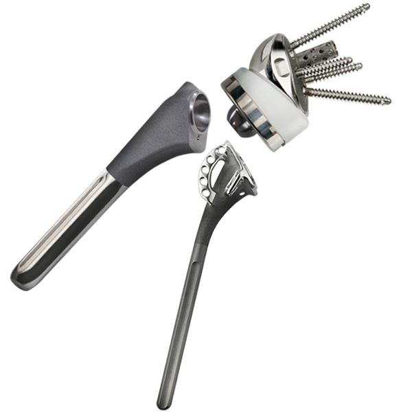 Este sistema de hombro versátil permite al cirujano convertir una hemiartroplastia degenerativa o de fracturas en una artroplastia inversa sin necesidad de retirar el vástago.